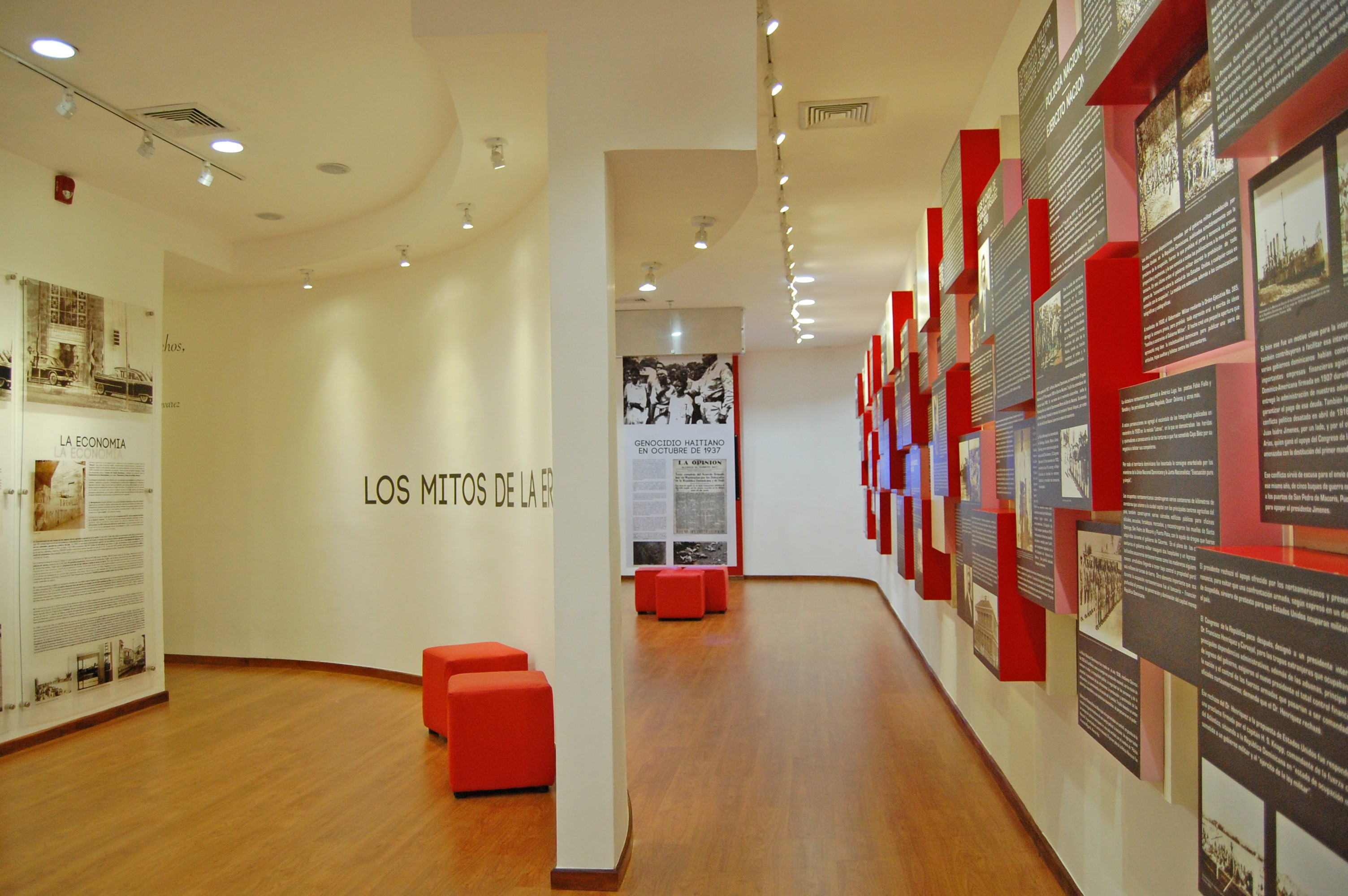 Paredes redondeadas dan un toque moderno y la impresión de avanzar siguiendo un círculo, pero cuando sucede algo que da un giro especial al desarrollo, las curvas se vuelven líneas rectas, como pasillos. Esto pasa, por ejemplo, donde se encuentra el holograma de las hermanas Mirabal, las Mariposas, con el mensaje de Minerva… “¡Me niego a que todo sea igual!”, la oigo clamar mientras pienso en los países que ahora necesitan Minervas y Manolos…