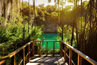 Las cuevas de los Tres Ojos están ubicadas en el parque Mirador del Este, en Santo Domingo Este, en la República Dominicana.